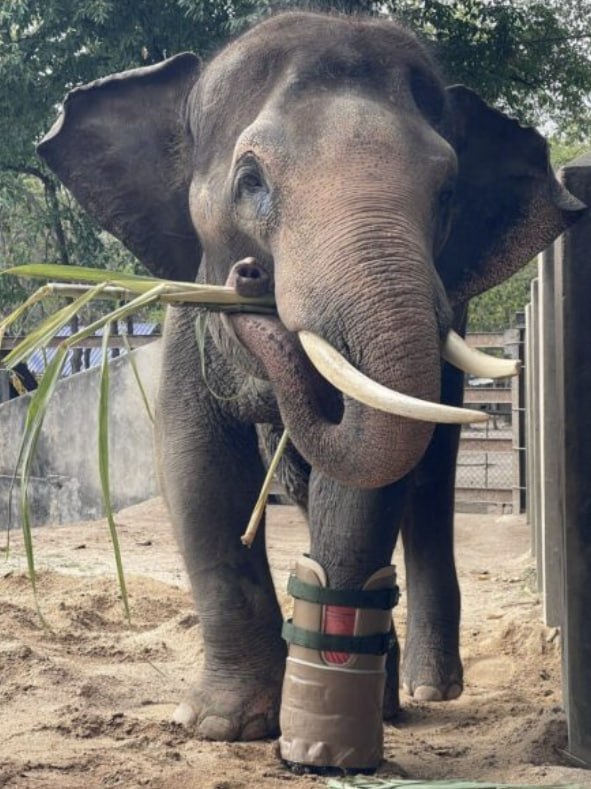 ឈូក ជាដំរីដែលរងគ្រោះដោយសារអន្ទាក់ ទទួលបានជើងសិប្បនិម្មិតថ្មី ជាព្រះរាជអំណោយពីសម្តេចព្រះមហាក្សត្រី