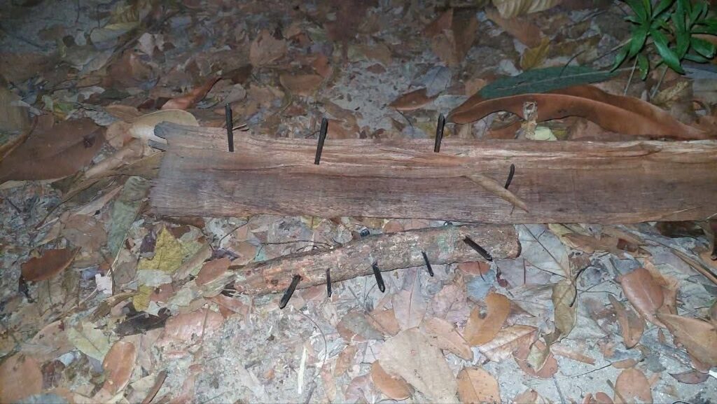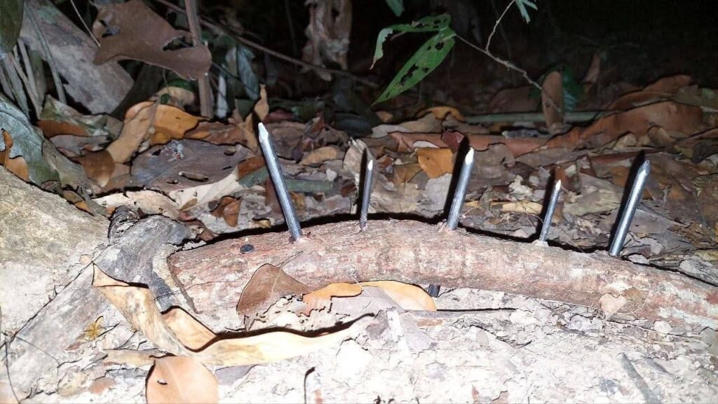 ល្បិចក្រុមជនល្មើស ជីករណ្តៅអន្ទាក់ជម្រៅជ្រៅ និងដំដែក គោល ជាមួយឈើបង្កប់តាមផ្លូវ និងក្រោមស្លឹកឈើ