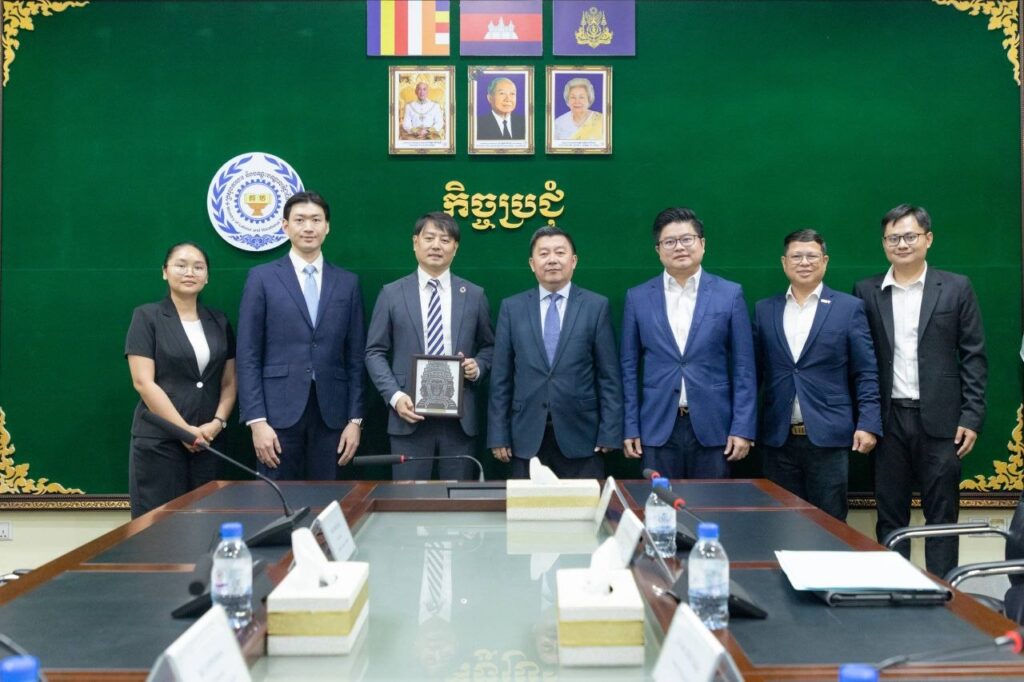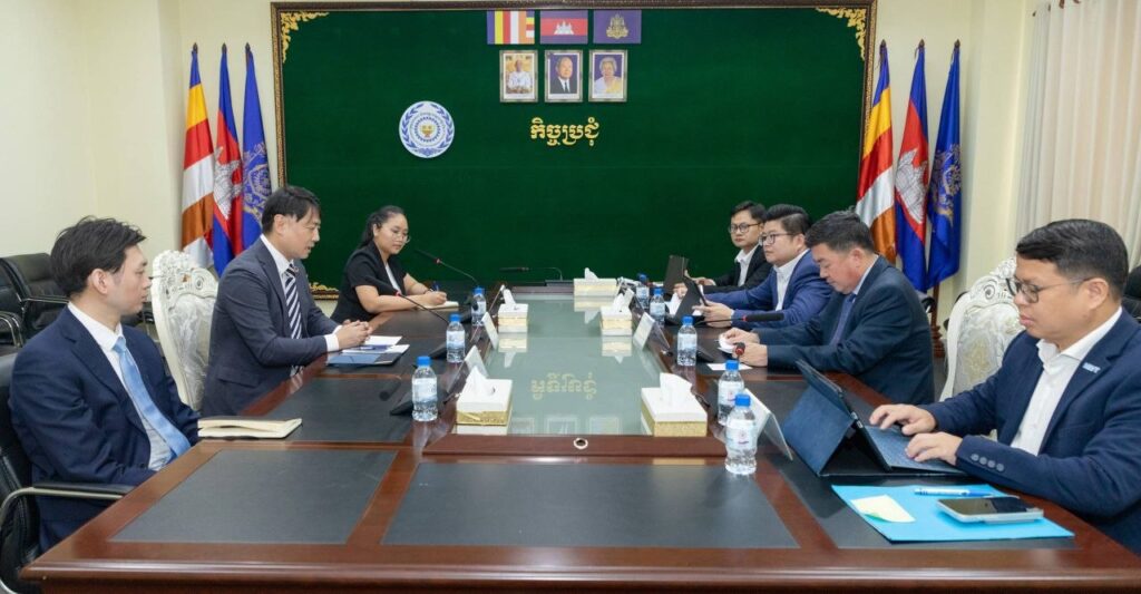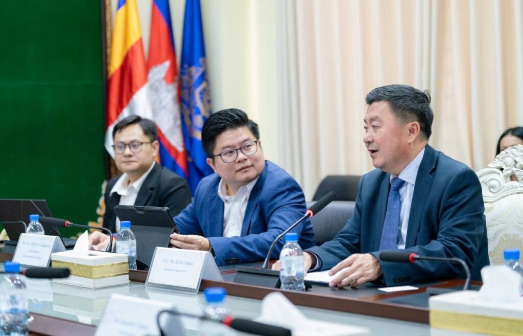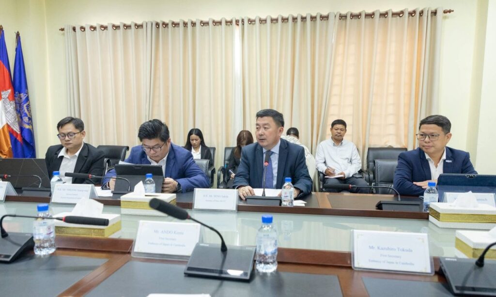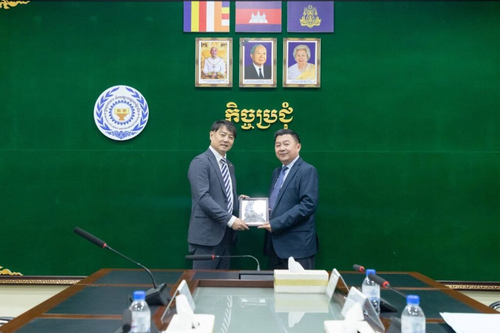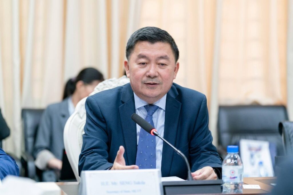 ឯកឧត្តម សេង សក្ដា រដ្ឋលេខាធិការ តំណាងដ៏ខ្ពង់ខ្ពស់ឯកឧត្ដម ហេង សួរ រដ្ឋមន្រ្តីក្រសួងការងារ និងបណ្តុះបណ្តាលវិជ្ជាជីវៈ ក្នុងជំនួបនាទីស្តីការក្រសួង។