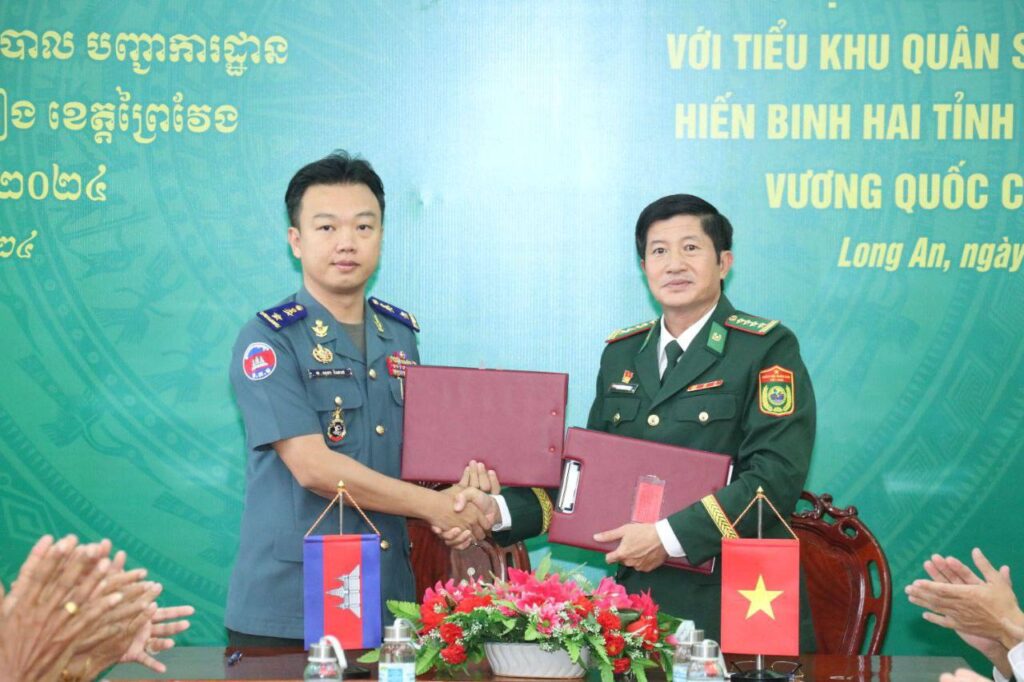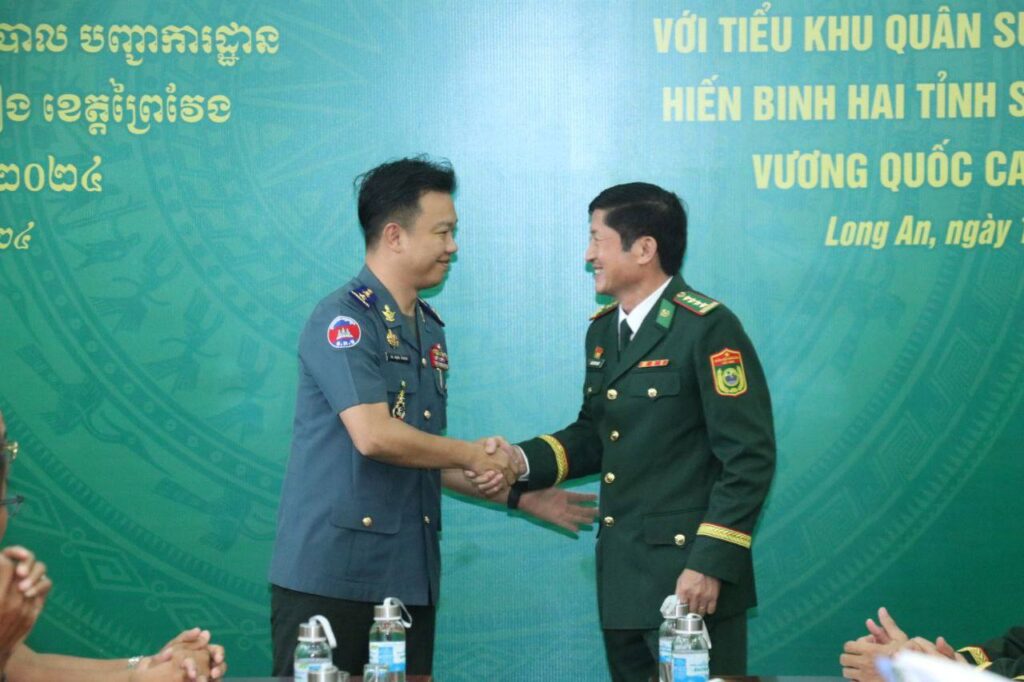 លោកឧត្តមសេនីយ៍ត្រី សុខា រ៉ានាថ មេបញ្ជាការកងរាជអាវុធហត្ថខេត្តស្វាយរៀង ជួបជាមួយ បញ្ជាការដ្ឋានកងទ័ពការពារព្រំដែនខេត្តឡុងអាន ប្រទេសវៀតណាម