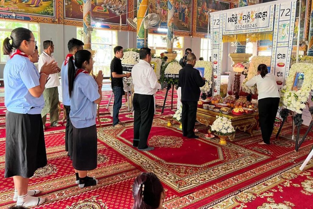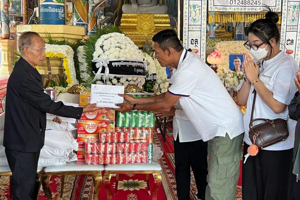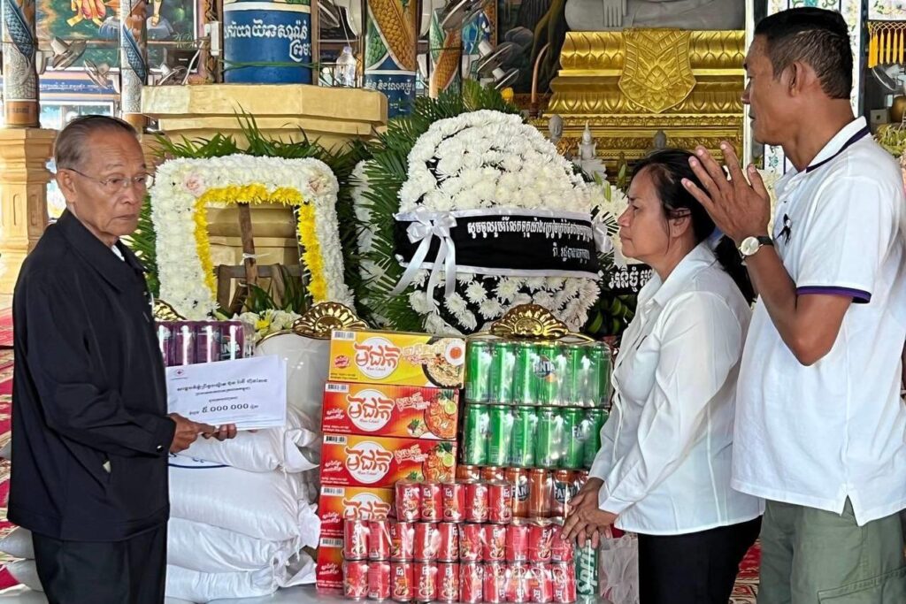 ជាមួយនឹងការរំលែកទុក្ខនេះ កាកបាទក្រហមកម្ពុជា ដែលមាន សម្តេចព្រះមហាក្សត្រី នរោត្តម មុនិនាថ សីហនុ ព្រះវររាជមាតាជាតិខ្មែរ គង់ប្រថាប់ជាព្រះប្រធានកិត្តិយស និងសម្តេចកិត្តិព្រឹទ្ធបណ្ឌិត ប៊ុន រ៉ានី ហ៊ុនសែន ជាប្រធាន សូមចូលរួមបុណ្យសពនូវថវិកាចំនួន ១៥លានរៀល និងគ្រឿងឧបភោគបរិភោគមួយចំនួនទៀត សម្រាប់ចាត់ចែងធ្វើបុណ្យតាមប្រពៃណី និងឧបត្ថម្ភថវិកាចំនួន ១០លានរៀលទៀត សម្រាប់ភរិយាដែលកំពុងសង្គ្រោះបន្ទាន់៕