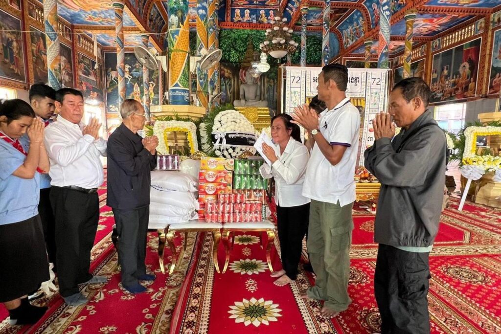 សម្តេចកិត្តិព្រឹទ្ធបណ្ឌិត ប្រធានកាកបាទក្រហមកម្ពុជាចាត់មន្ត្រីចូលរួមរំលែកទុក្ខ និងនាំយកថវិកា ២៥លានរៀលនិងគ្រឿងឧបភោគបរិភោគមួយចំនួន ជូនដល់គ្រួសាររងគ្រោះថ្នាក់ចរាចរណ៍ស្លាប់៣នាក់ និងរបួសធ្ងន់ម្នាក់ លើផ្លូវ៦០ម៉ែត្រ