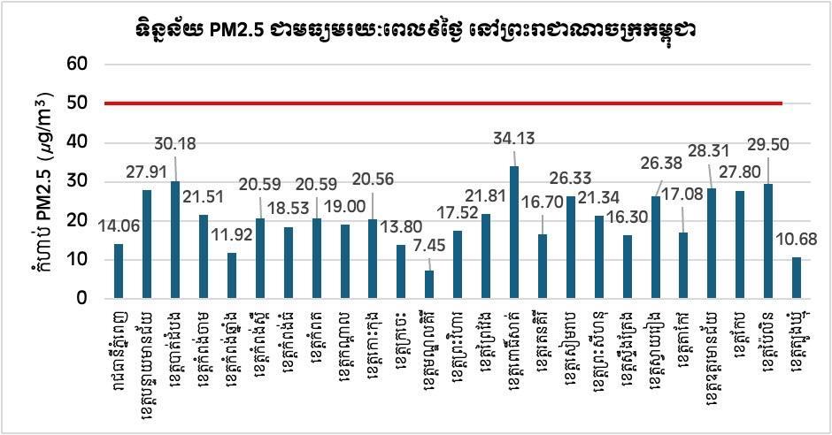 ឯកឧត្តម ខ្វៃ អាទិត្យា អនុរដ្ឋលេខាធិការ បានបញ្ជាក់ទៀតថា គុណភាពខ្យល់ នៅកម្ពុជាស្ថិតនៅក្រោម បន្ទាត់ក្រហម នៅឡើយ ដោយពុំមានអ្វី ដែលជាការព្រួយបារម្ភនោះទេ។ ដោយគិតត្រឹម ថ្ងៃទី៩ ខែមករានេះ ការត្រួតពិនិត្យគុណភាពខ្យល់ នៅទូទាំងប្រទេសកម្ពុជា គឺមាន២៥,៤៩មីក្រូក្រាម ក្នុង១ម៉ែត្រគូប(µg/m3) ដែលតួលេខនេះស្ថិតនៅក្រោមស្តង់ដារជាតិ ដែលកំណត់យក៥០មីក្រូក្រាម ក្នុង១ម៉ែត្រគូប(µg/m3)។ ឯកឧត្តម សង្កត់ធ្ងន់ថា កម្ពុជា មិនមែនជាប្រភពបំពុលខ្យល់ ដល់ប្រទេសជិតខាង ដូចការចោទប្រកាន់នោះទេ។