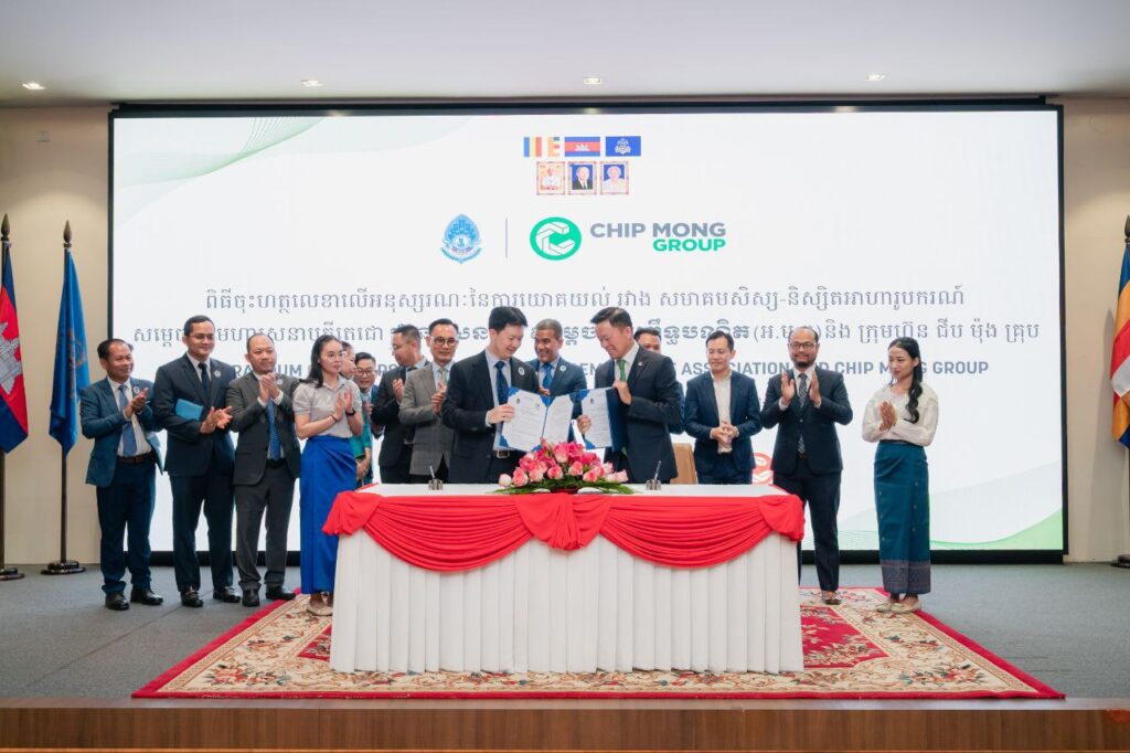 ឧត្តម សុខ ពុទ្ធិវុធ អនុប្រធាន និងជាតំណាងដ៏ខ្ពង់ខ្ពស់ លោកជំទាវបណ្ឌិត ពេជ ចន្ទមុន្នី ប្រធានសមាគមសិស្ស-និស្សិតអាហារូបករណ៍ សម្តេចអគ្គមហាសេនាបតីតេជោ ហ៊ុន សែន និងសម្តេចកិត្តិព្រឹទ្ធបណ្ឌិត (អ.ម.ត) និង អ្នកឧកញ៉ា លាង ម៉េង សហស្ថាបនិក និងជាប្រធានក្រុមអគ្គនាយកនៃក្រុមហ៊ុន ជីប ម៉ុង គ្រុប រសៀលថ្ងៃ១៤មករា បានចូលរួម ក្នុងពិធីចុះហត្ថលេខាលើអនុស្សរណៈនៃការយោគយល់រវាងស្ថាប័នទាំងពីរ នៅរោងចក្រខ្មែរប៊ែវើរីជីស។