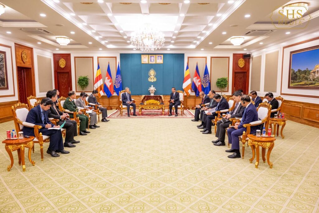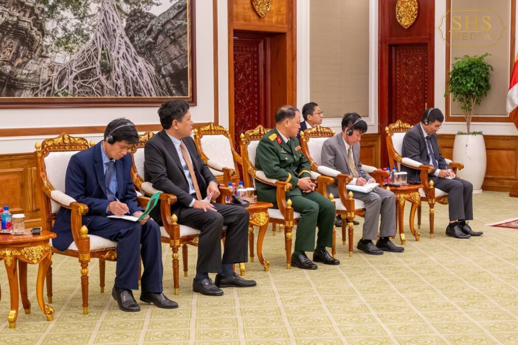 សម្ដេចអគ្គមហាសេនាបតីតេជោ ហ៊ុន សែន ប្រធានព្រឹទ្ធសភានៃព្រះរាជាណាចក្រកម្ពុជា អនុញ្ញាតឱ្យឯកឧត្តម Nguyen Minh Vu ឯកអគ្គរដ្ឋទូតតែងតាំងថ្មីនៃសាធារណរដ្ឋសង្គមនិយមវៀតណាម ប្រចាំព្រះរាជាណាចក្រកម្ពុជា ចូលជួបសម្តែងការគួរសម និងពិភាក្សាការងារ នៅវិមានព្រឹទ្ធសភា រាជធានីភ្នំពេញ នាព្រឹកថ្ងៃទី១២ ខែកុម្ភៈ ឆ្នាំ២០២៥។